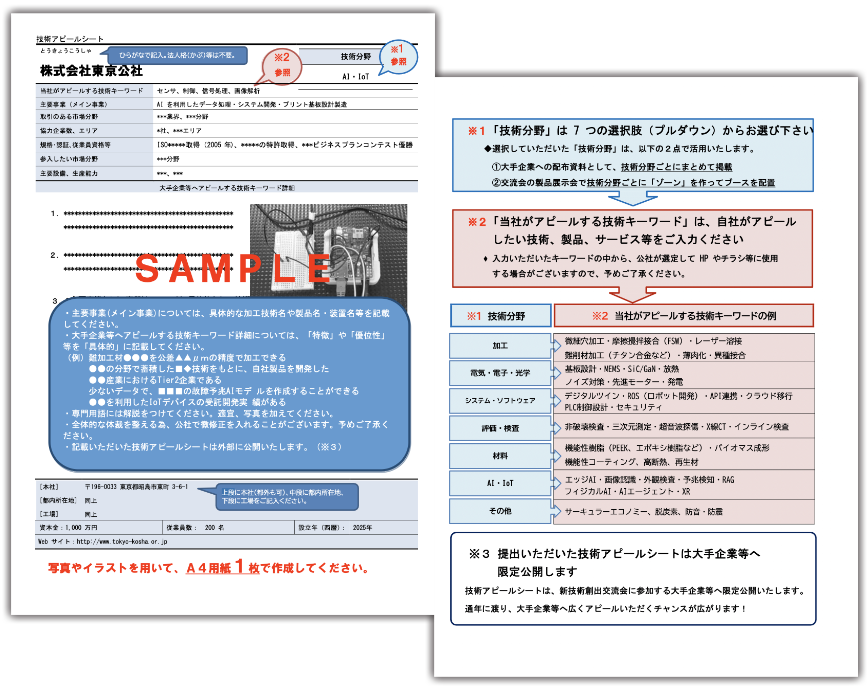 都内中小企業の優れた技術・製品を、オープンイノベーション志向の大手企業とマッチングするために「技術アピールシート」を活用しています。
